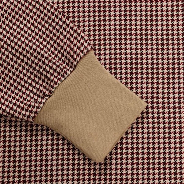 • Red & khaki houndstooth long-sleeve rugby